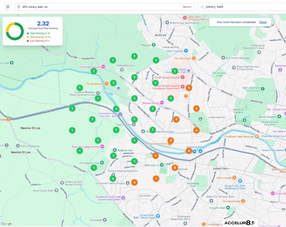 See Your True Ranking: Are you invisible to customers just a few streets away? This report shows your exact Google Maps ranking from multiple locations around your business.